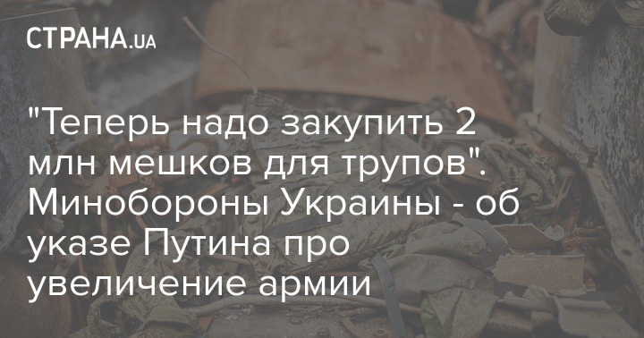 "Теперь надо закупить 2 млн мешков для трупов". Минобороны Украины - об указе Путина про увеличение армии