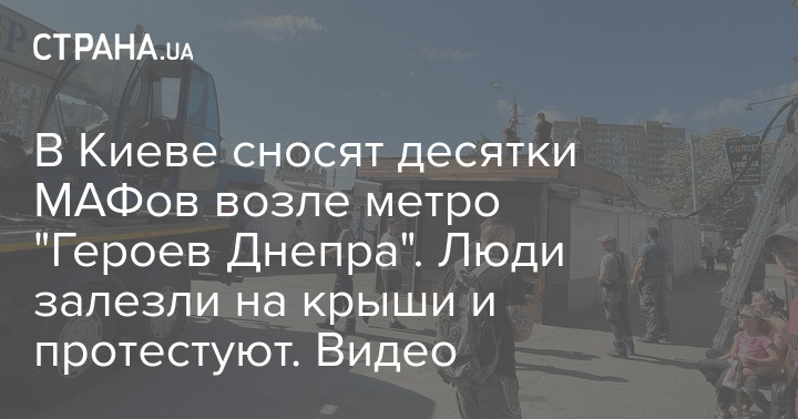 В Киеве сносят десятки МАФов возле метро "Героев Днепра". Люди залезли на крыши и протестуют. Видео