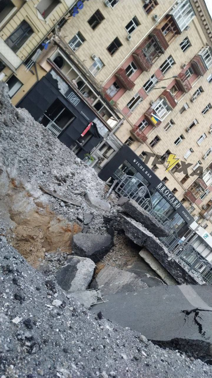 Одна из пущенных сегодня по Харькову ракет приземлилась в асфальт около жилого дома на Павловской площади.