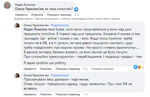 Позже Герасимюк добавила, что весь диапазон волн был просканирован, вражеских радиостанций не обнаружили.