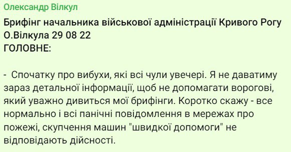23.38 Глава военной администрации Кривого Рога Александр Вилкул фактически подтвердил информацию о прилетах в город.