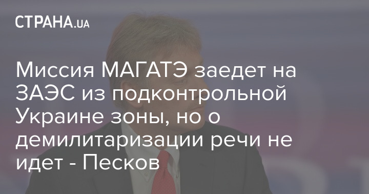 Миссия МАГАТЭ заедет на ЗАЭС из подконтрольной Украине зоны, но о демилитаризации речи не идет - Песков