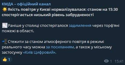 Кроме того, сообщалось, вчера киевлянам также рекомендовали закрыть окна и ограничить пребывание на улице из-за задымления воздуха, вызванного торфяными пожарами в Бучанском и Вышгородском районах Киевской области.