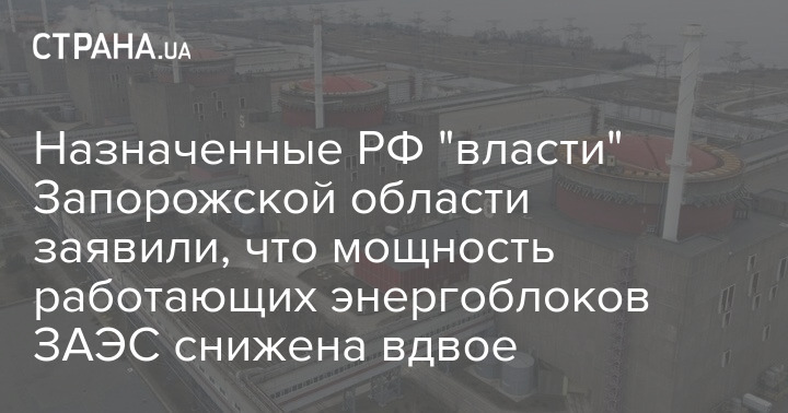 Назначенные РФ "власти" Запорожской области заявили, что мощность работающих энергоблоков ЗАЭС снижена вдвое