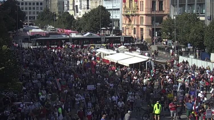 На Вацлавской площади в Праге 3 сентября прошел огромный митинг с требованием отставки правительства, снижения цен на газ и электричество.