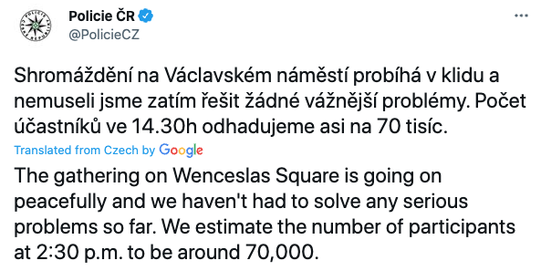 Премьер-министр Петр Фиала заявил, что митинг организован пророссийскими организациями, выступающими против интересов Чехии.