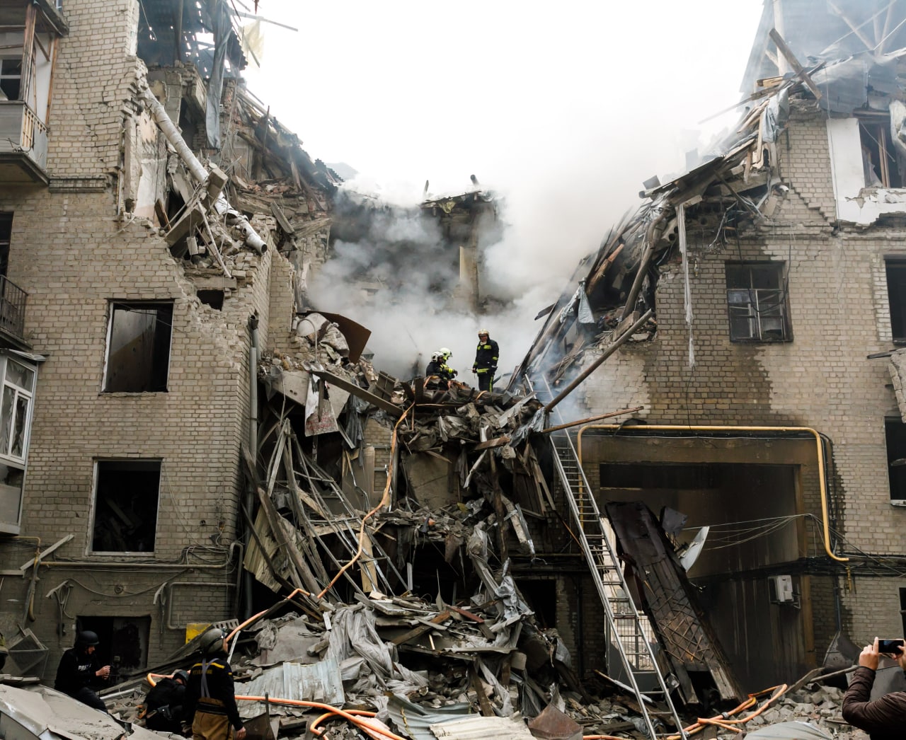 10.35 Фото прилета в центре Харькова Ракета попала в пятиэтажный жилой дом в центре города.