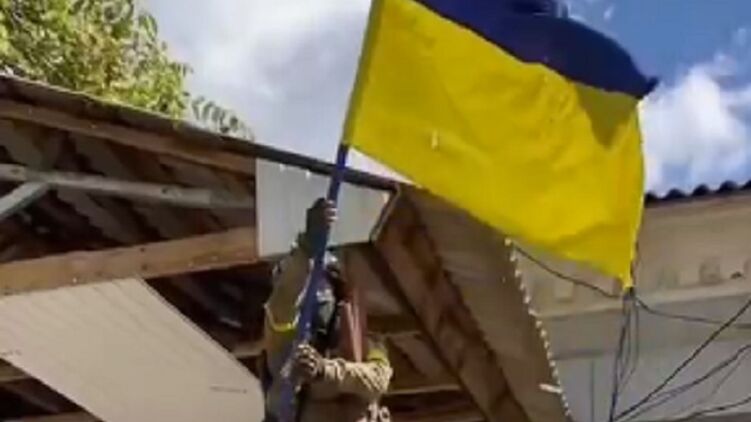 Появилось видео, как украинские военные поднимают флаг над сельсоветом Высокополья на севере Херсонской области. Об освобождении этого населенного пункта сообщалось в воскресенье.