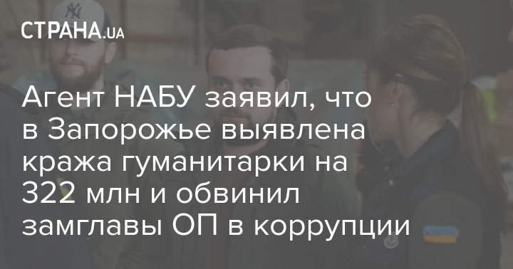 Агент НАБУ заявил, что в Запорожье выявлена кража гуманитарки на 322 млн и обвинил замглавы ОП в коррупции