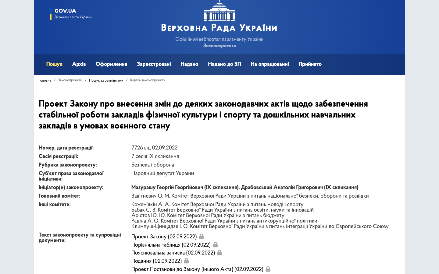 Документ зарегистрировали нардепы от "Слуги народа" Георгий Мазурашу и Анатолий Драбовский.