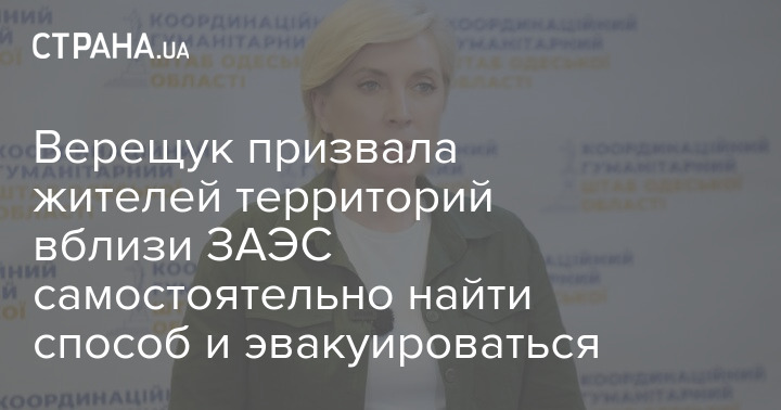 "Обращаюсь к жителям временно неподконтрольных правительству Украины районов, прилегающих к ЗАЭС: эвакуируйтесь! Найдите способ перебраться на подконтрольную территорию. Мы вас ждем и поможем", - написала Верещук.