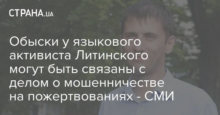 Столичная полиция 8 сентября заявила, что проводит обыски в Киеве, Киевской области и Львове по делу о мошенничестве на пожертвованиях, в котором фигурируют три человека. Утренний обыск у языкового активиста Святослава Литинского может быть связаны с этим делом.