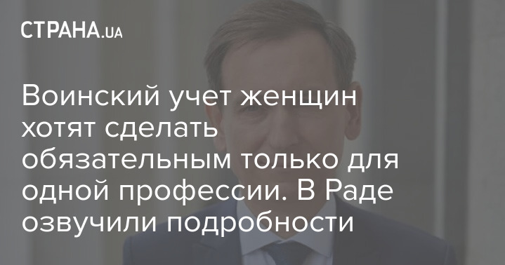 "Верховная Рада рассмотрит проект закона, который предложил и поддержал профильный Комитет, о постановке на воинский учет. Предлагается вариант обязательного учета для женщин-медиков. Что касается других военно-учетных специальностей, то они будут носить исключительно добровольный характер", - заявил Вениславский.