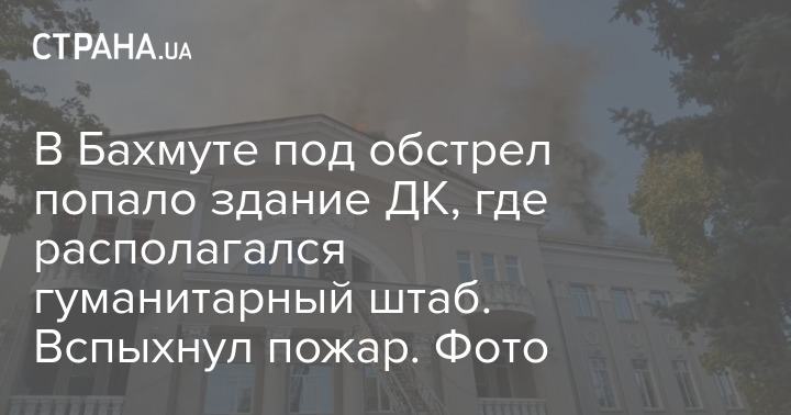В Бахмуте под обстрел попало здание ДК, где располагался гуманитарный штаб. Вспыхнул пожар. Фото