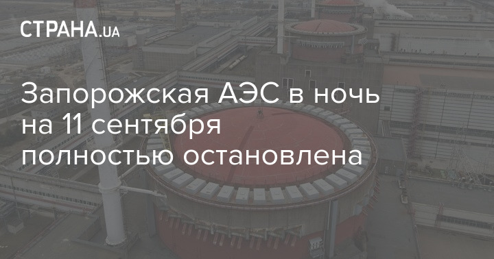 Запорожская АЭС в ночь на 11 сентября полностью остановлена