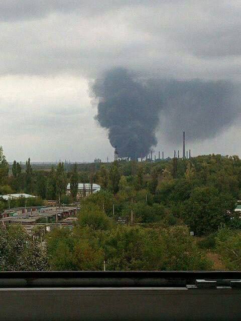 20.37 Пожар в смолоперегонном цехе на Авдеевском коксохимическом заводе после обстрела.