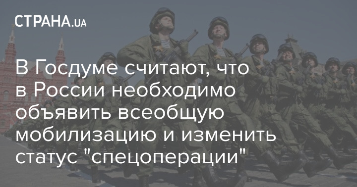 В Госдуме считают, что в России необходимо объявить всеобщую мобилизацию и изменить статус "спецоперации"