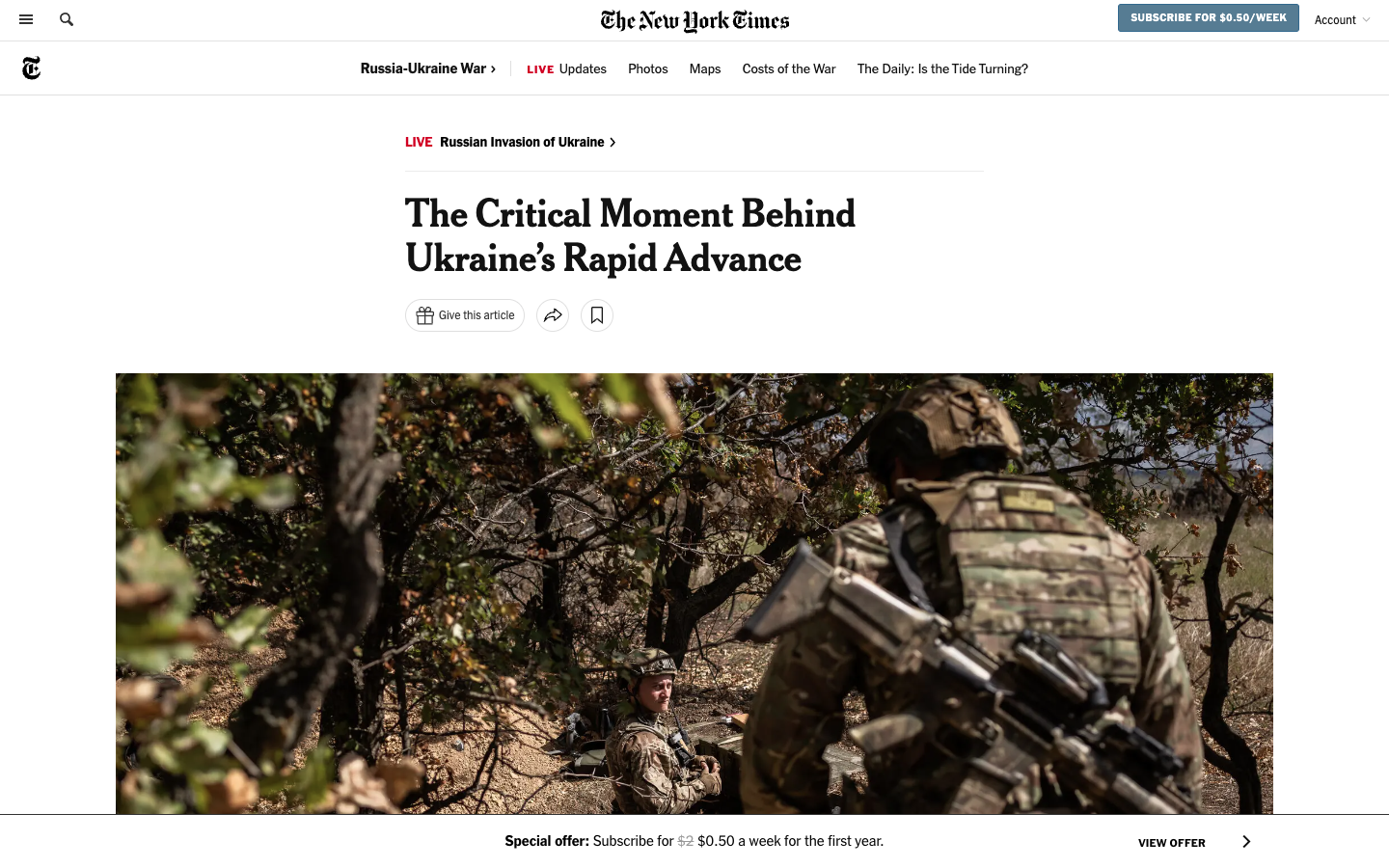 Американская газета The New York Times уже писала, что контрнаступление ВСУ в Харьковской области помогала готовить разведка США, а теперь сообщает новые подробности.