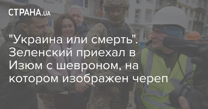 В Харьковскую область Владимир Зеленский сегодня приехал с шевроном, на котором изображен череп и написано "Украина или смерть".