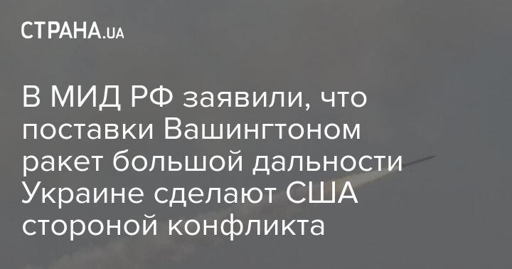 В МИД РФ заявили, что поставки Вашингтоном ракет большой дальности Киеву сделает Соединенные Штаты Америки (США) стороной конфликта.