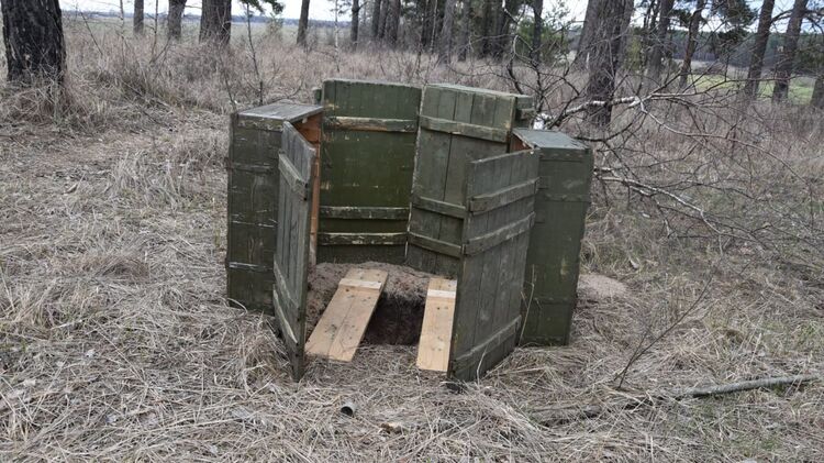 К слову, туалет на позициях российских войск выглядит как выкопанная яма, уставленная по периметру ящиками из-под боеприпасов. Для "удобства" по бокам отверстия в земле положены две доски.