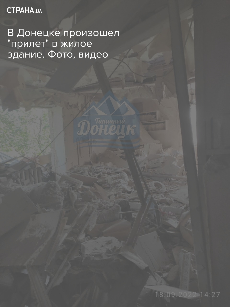 В Донецке сообщают о прилете в жилое здание. Фото: скриншот из видео