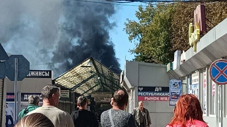 В Донецке 19 сентября начался пожар на рынке после обстрела. Горит рынок "Сокол" в микрорайоне Текстильщик.