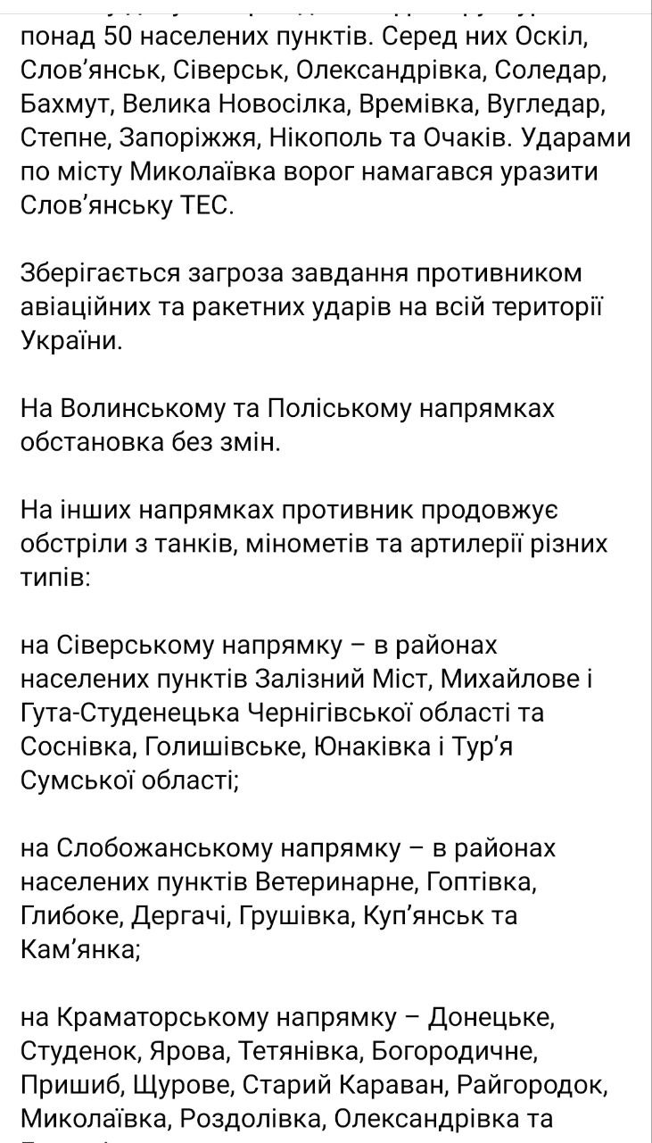1. Основные российские цели по обстрелам за эти сутки - Оскол, Славянск, Северск, Александровка, Соледар, Бахмут, Великая Новоселка, Времьевка, Угледар, Степное, Запорожье, Никополь и Очаков.