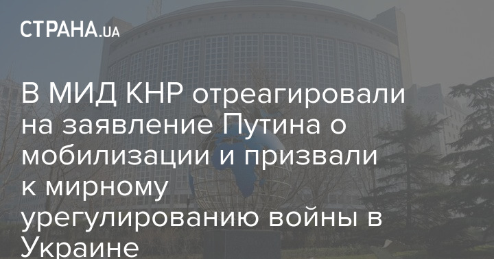 Появилась первая реакция Китая на заявление президента РФ Владимира Путина о частичной мобилизации. МИД Китая призывает все стороны конфликта в Украине "к прекращению огня и к мирному урегулированию путем диалога".