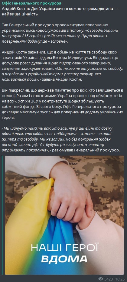 Ранее глава военной разведки Кирилл Буданов рассказал, что командиры «Азова» не знали, что едут на обмен, и считали, что их везут на «суд».
