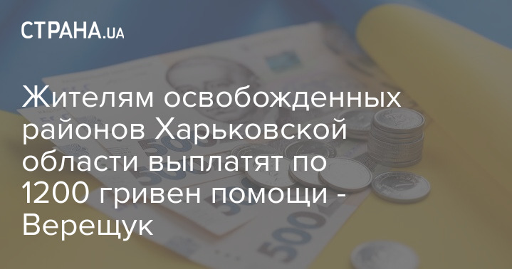 Верещук сообщила, что жители освобожденной Харьковской области могут получить по 1200 гривен. Фото: Из открытых источников