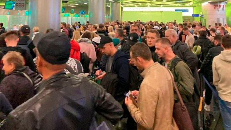 Российские телеграм-каналы публикуют фото и видео очередей мужчин в российских аэропортах и на сухопутных границах, которые образовались после объявления в РФ "частичной мобилизации".