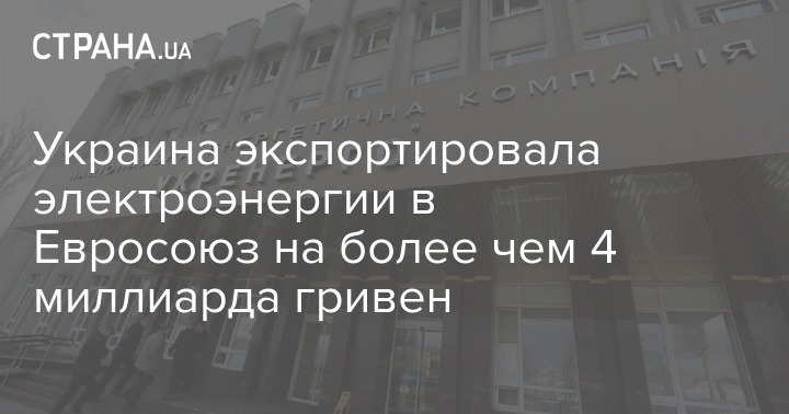 Национальная энергетическая компания "Укрэнерго" получила более 4 миллиардов гривен за экспорт электроэнергии в Евросоюз. Об этом сообщила пресс-служба компании.