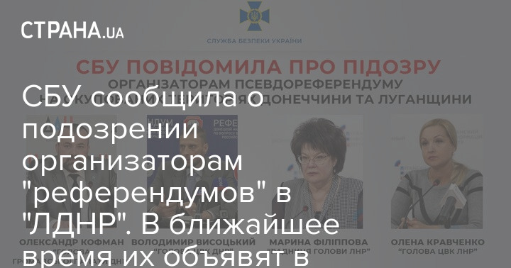 Служба безопасности Украины сообщила о подозрении организаторам "референдумов" в "ЛДНР".