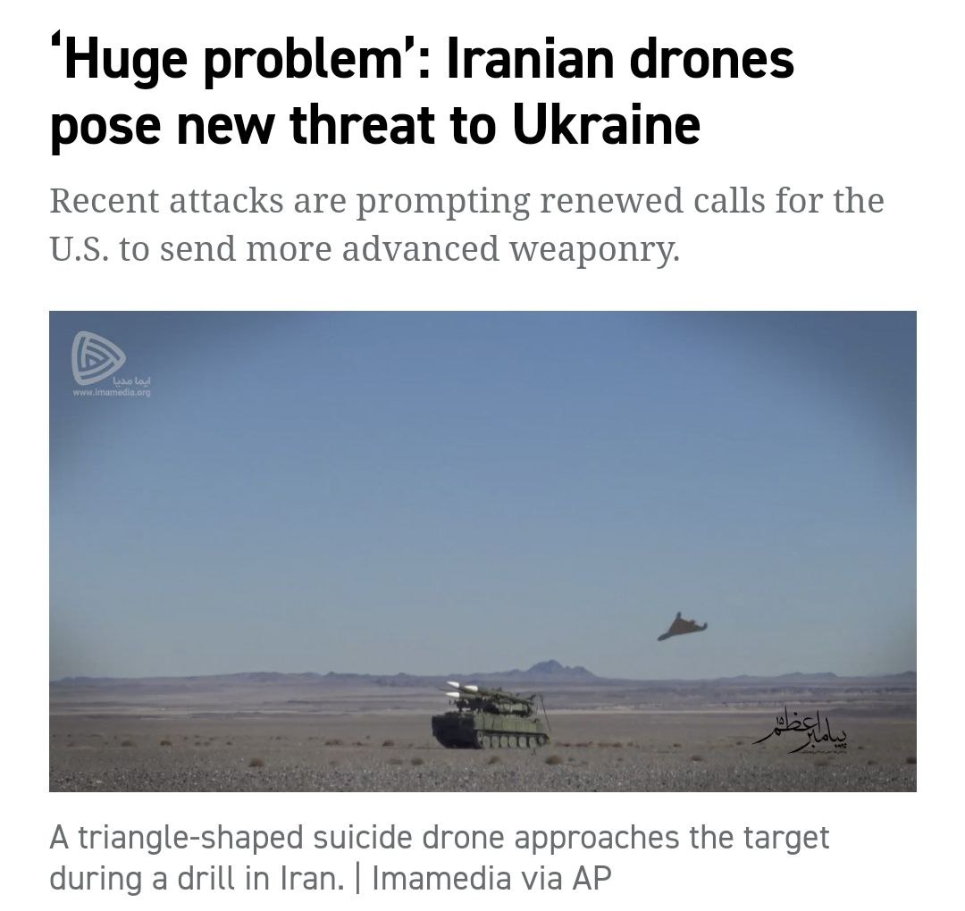 07:25 Американское издание Politico называет иранские беспилотники "огромной проблемой" для ВСУ.
