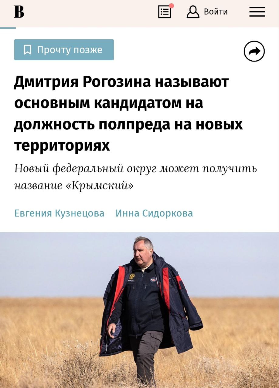Необходимость создания нового федерального округа источники объясняют "непростой ситуацией", сложившейся вокруг "референдумов". И тем, что для управления новыми территориями нужен политический тяжеловес.