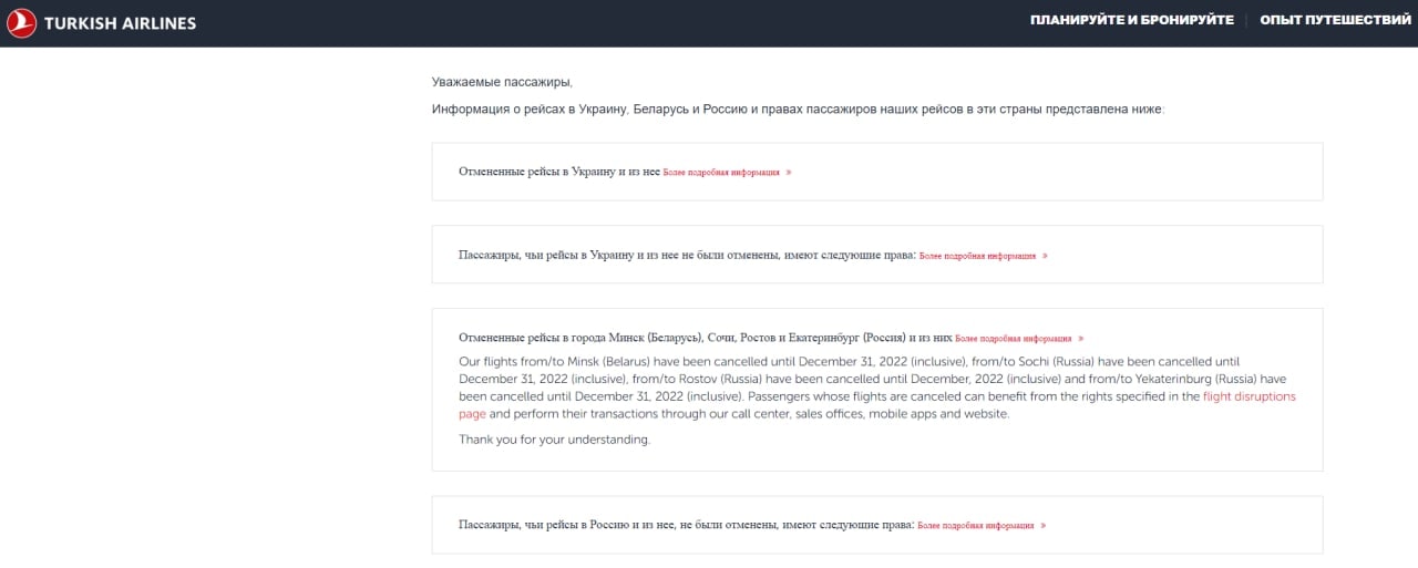 Причины не уточняют. На сайте говорится, что пассажиры, купившие билеты на отменные рейсы, смогут либо выбрать другой маршрут, либо полностью вернуть деньги.