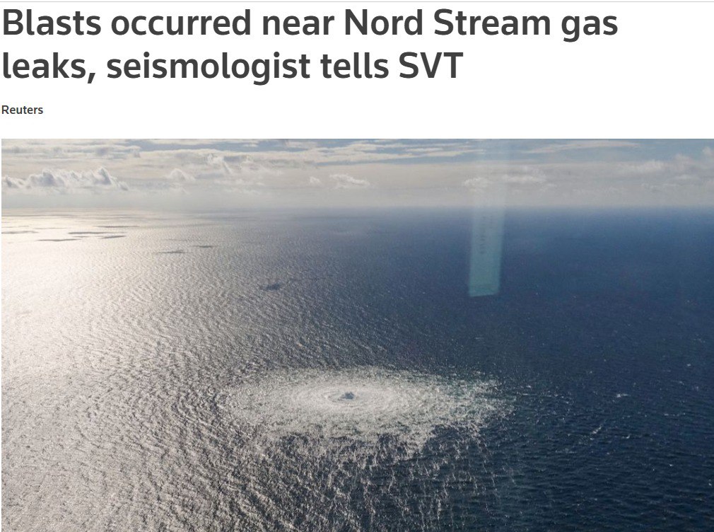 20:43 Шведские сейсмологи считают, что инциденты на "Северных потоках" связаны со взрывами, а не с землетрясениями.