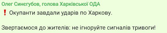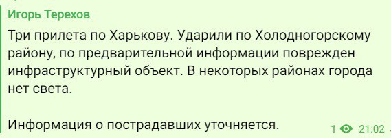 20:57 Глава Харьковской ОВА подтвердил удар по Харькову.