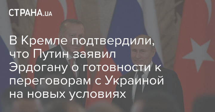 Пресс-секретарь президента РФ Дмитрий Песков подтвердил, что Владимир Путин в разговоре с турецким коллегой Реджепом Эрдоганом заявлял о готовности Москвы к переговорам с Киевом.
