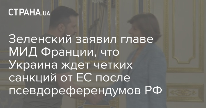 Зеленский заявил главе МИД Франции, что Украина ждет четких санкций от ЕС после псевдореферендумов РФ