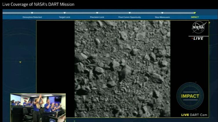 IMPACT SUCCESS! Watch from #DARTMIssion’s DRACO Camera, as the vending machine-sized spacecraft successfully collides with asteroid Dimorphos, which is the size of a football stadium and poses no threat to Earth. pic.twitter.com/7bXipPkjWD