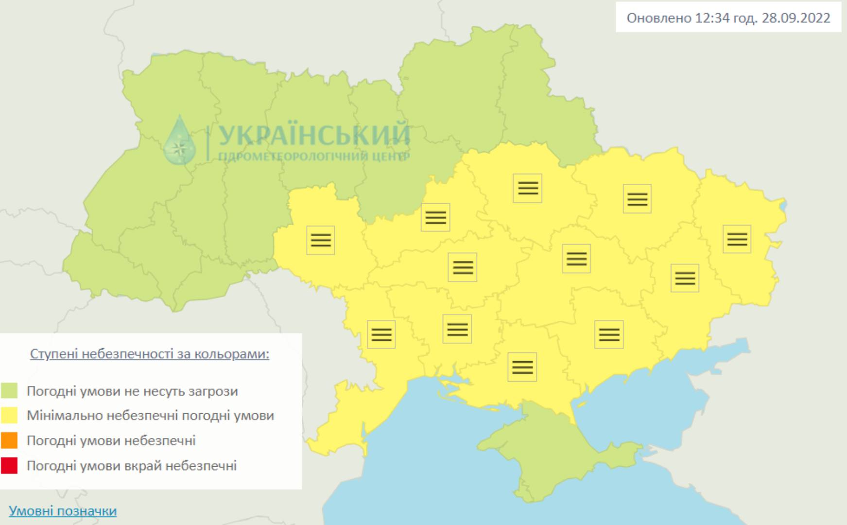 Об этом говорится в прогнозе погоды от "Укргидрометцентра" на 29 сентября.