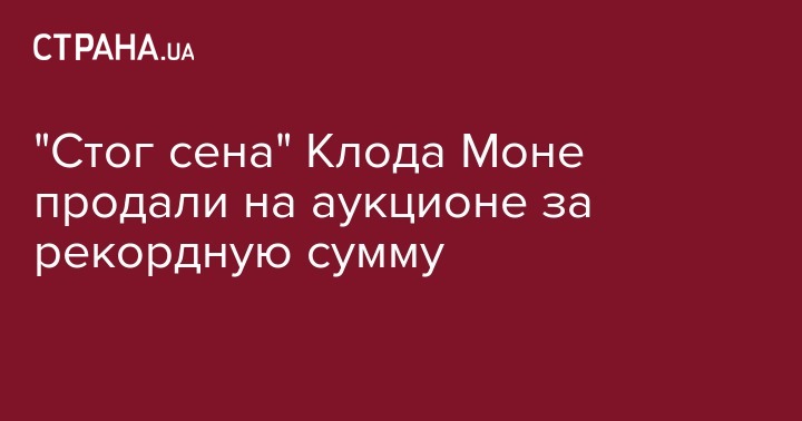 Полотно Клода Моне "Стог сена" было продано на аукционе Christieʼs за 81,4 миллиона долларов. Сумма, заплаченная за написанную в 1871 году картину, почти на 1 миллион долларов больше предыдущего рекорда аукционной цены на картины великого мастера.