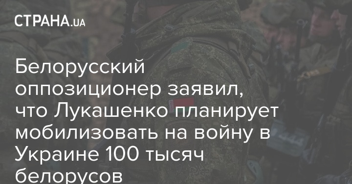 Белорусский оппозиционер заявил, что Лукашенко планирует мобилизовать на войну в Украине 100 тысяч белорусов