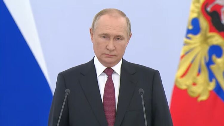 Президент РФ Владимир Путин выступает в Кремле в пятницу, 30 сентября. Там начинается процедура "принятия в состав России" захваченных территорий Украины.