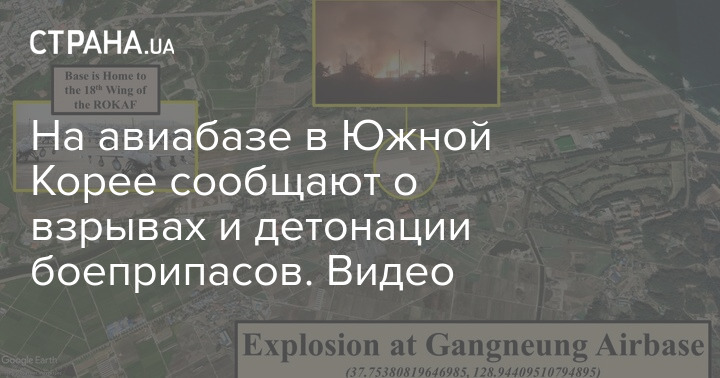 Пишут, что на этих видео – масштабные взрывы и детонация боеприпасов на авиабазе Каннын на побережье Японского моря, где дислоцируется 18-е авиакрыло ВВС Южной Кореи.