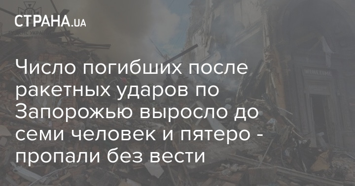Число погибших после ракетных ударов по Запорожью увеличилось до 7 человек