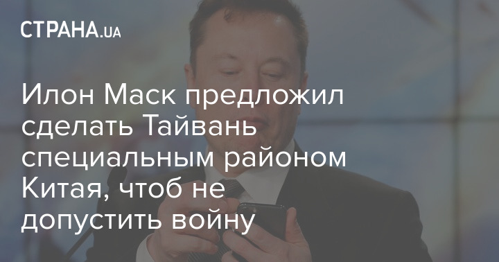 Бизнесмен Илон Маск, который ранее заявлял, что он не хочет третьей мировой войны, предложил сделать Тайвань специальным административным районом Китая по примеру Гонконга и Макао.