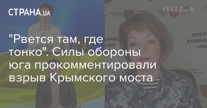 "Рвется там, где тонко". Силы обороны юга прокомментировали взрыв Крымского моста